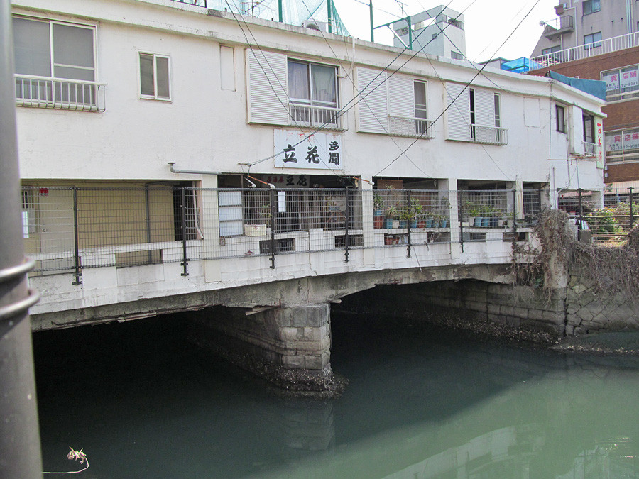 新橋のすぐ裏は、2012年3月いっぱいで解体・撤去が決まっている「大黒・恵美須市場」です。・・ということは、おそらくこの新橋と暗渠も・・・・