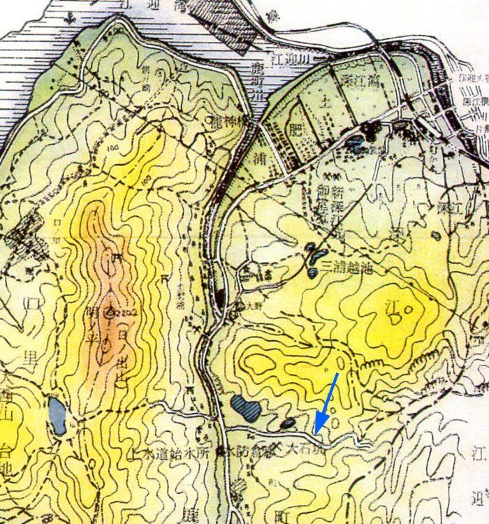 下の地図には「御堂坑」や「新深江坑」とともにちゃんと「大石坑」と記されています。