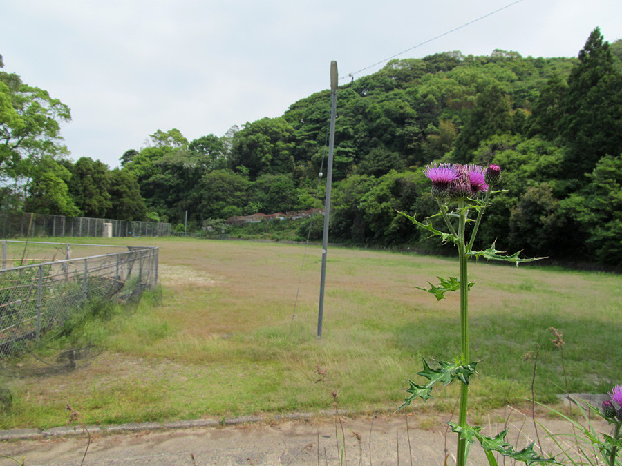 住宅から小学校跡地を望む。当時はこの辺りに賑やかな人々の往来があったのでしょう・・。
