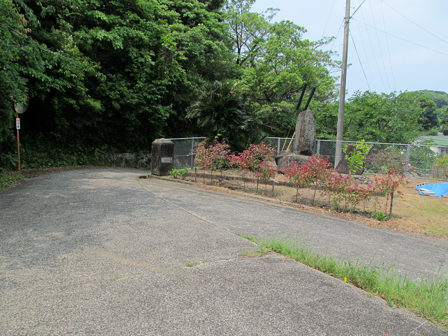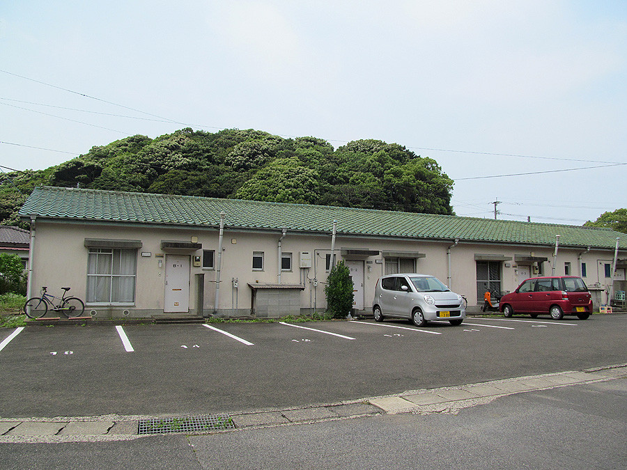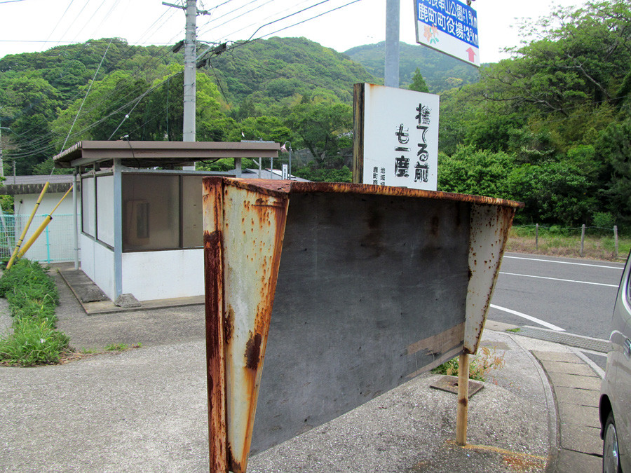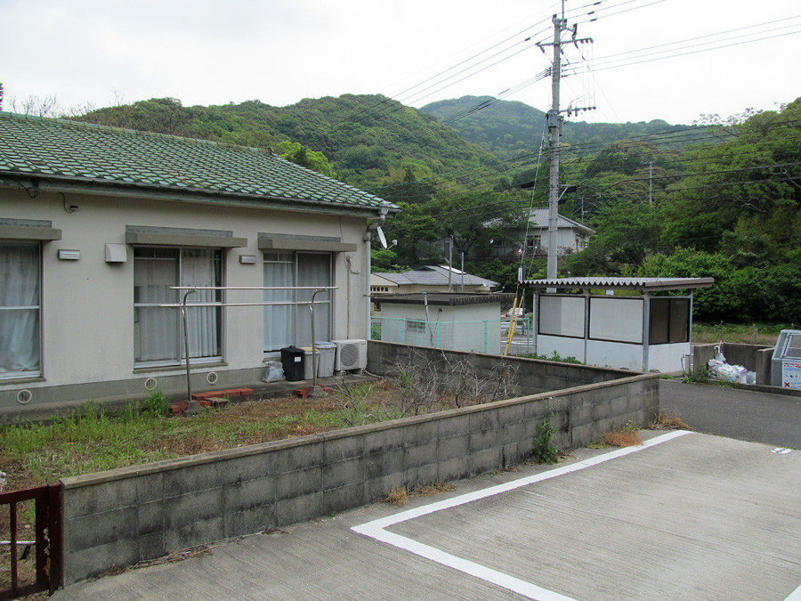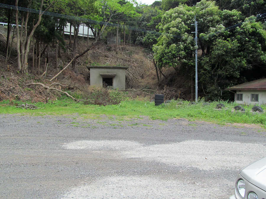 旧北松浦郡鹿町町長串(なぐし)。西肥バス「朝地露入り口」バス停を下りると、神林小学校跡地と炭鉱住宅風な建物が見えます。