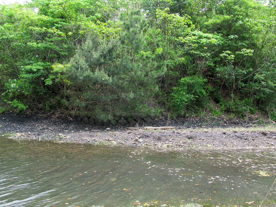 泥に埋もれた石垣の周りが黒ずんでいることから、ようやくここに炭鉱があったことを確認することが出来ます。