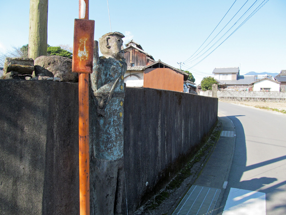 分校前の横断歩道には、ドライバーに注意を促すためのコンクリートの人形がありました。警察官ということなのでしょうか。