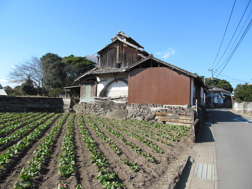 辺りには古い家屋がたくさん残されています。この家屋にも同じような小さな屋根が付いていますね。囲炉裏の煙を外に出す為の「煙やぐら」にしては、大きすぎるような気がします。私がかつて住んでいた群馬県は養蚕が盛んな土地で、かいこ部屋の室温が上がり過ぎないように、このような換気窓が屋根についている農家がよく見られましたが、調べてみると島原半島は養蚕が非常に盛んだったらしいので、もしかすると養蚕農家の造りなのかもしれません。