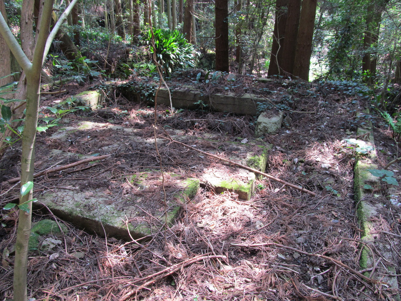 現在の同地はどうなっているのかと思い、この施設があった辺りを登ってみることにしました。いつの時代のものかは不明ですが、深い山にしてはがっちりとしたコンクリートが敷いてあります。